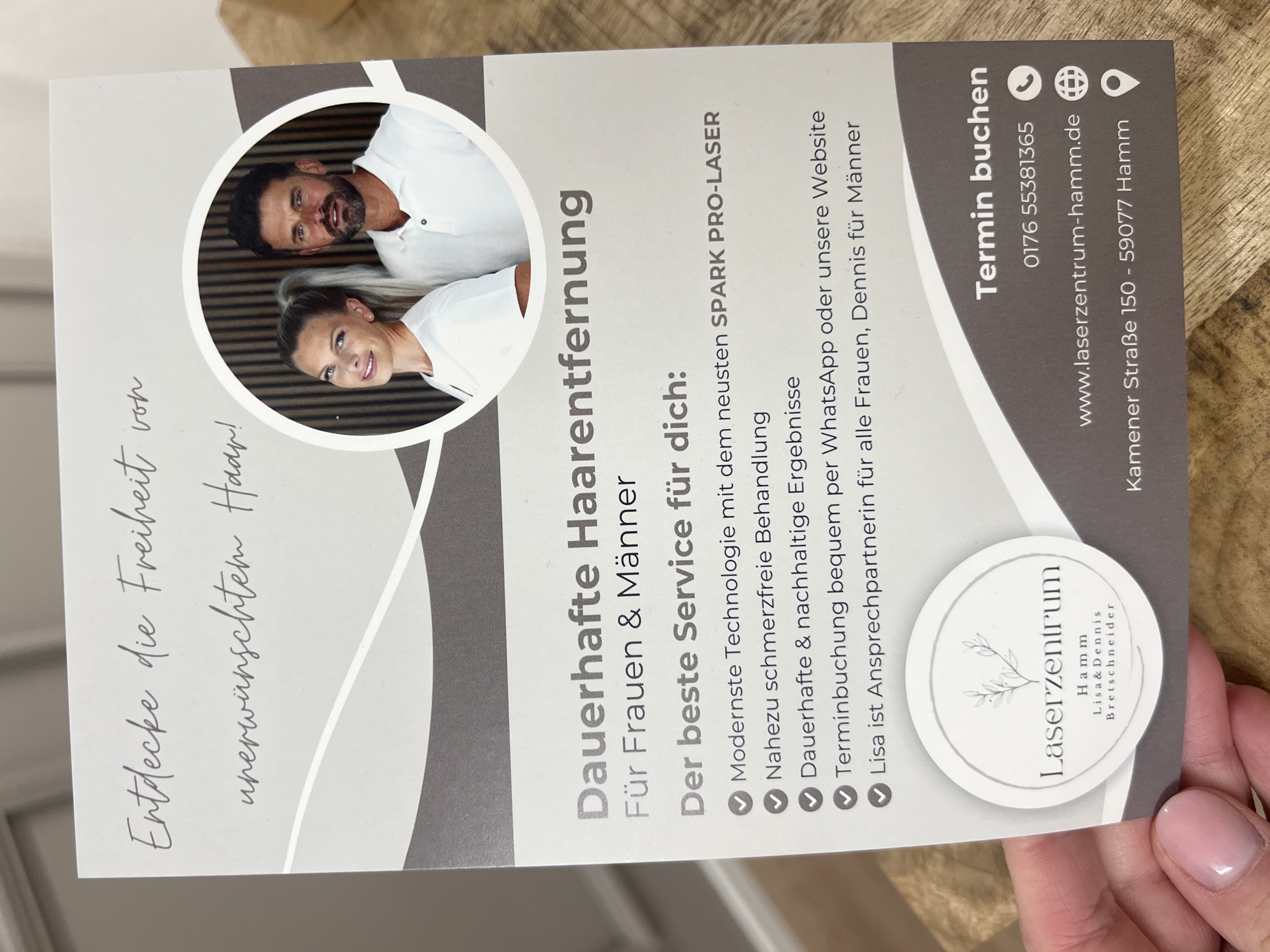 Herzlich Willkommen in unserem Laserzentrum in Hamm!🌸 Schön, dass du zu uns gefunden hast. Wir sind Lisa und Dennis, und kommen beide aus dem medizinischen Bereich. Es ist uns eine Freude, dich auf dem Weg zu glatter, geschmeidiger und vor allem haarfreier Haut zu begleiten. 💥 Lass uns dir helfen, endlich die Haut zu…